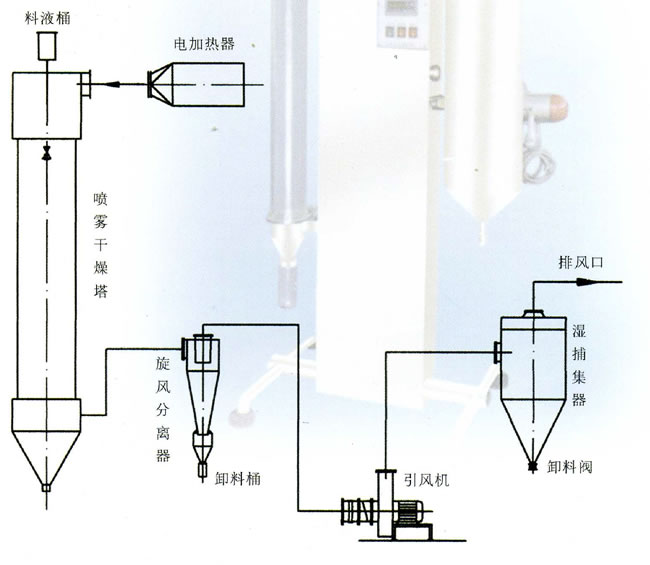 The dryer is suitable for drying good flowing emulsions, emulsions, suspensions (particle diameter≯50um), and other materials.